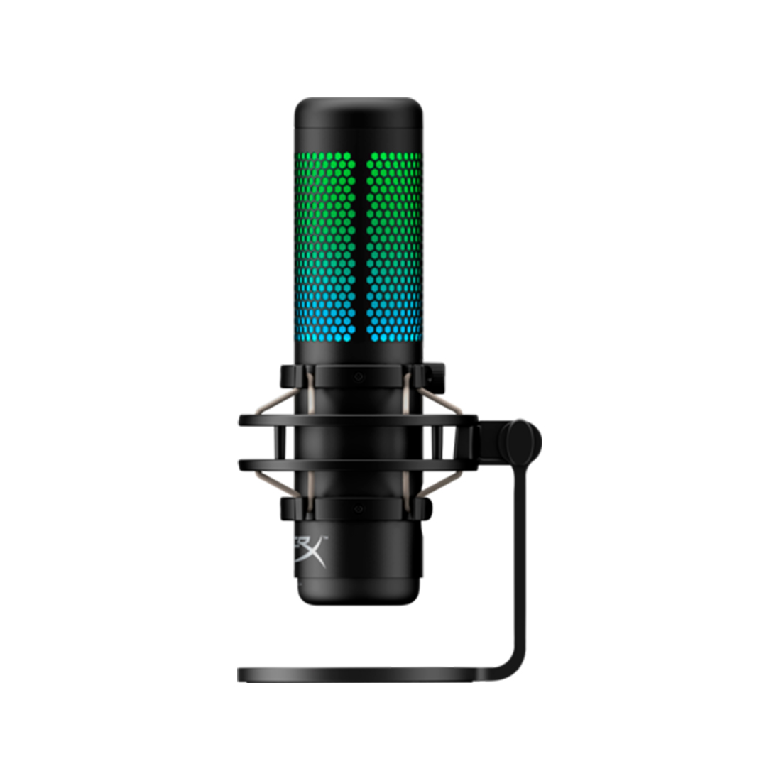HyperX QuadCastTM S — это конденсаторный USB-микрофон с потрясающим внешним видом и качеством звука. Великолепная RGB-подсветка и динамические эффекты добавят стиля и изысканности любому стриму или постановке (для настройки используется ПО HyperX NGENUITY). QuadCast S — полнофункциональный микрофон, оснащенный амортизирующим подвесом, который помогает снизить шум окружающей среды, и встроенным поп-фильтром, с помощью которого можно приглушить взрывные звуки.