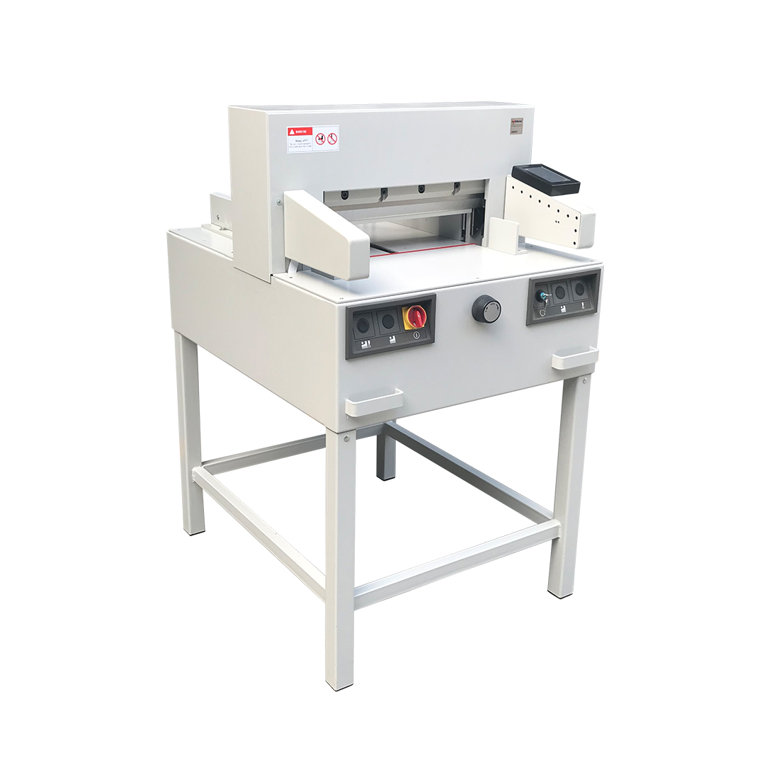 Автоматический прижим бумаги и программируемый задний упор с цветной сенсорной панелью (touch pad), отображение в мм/дюймах