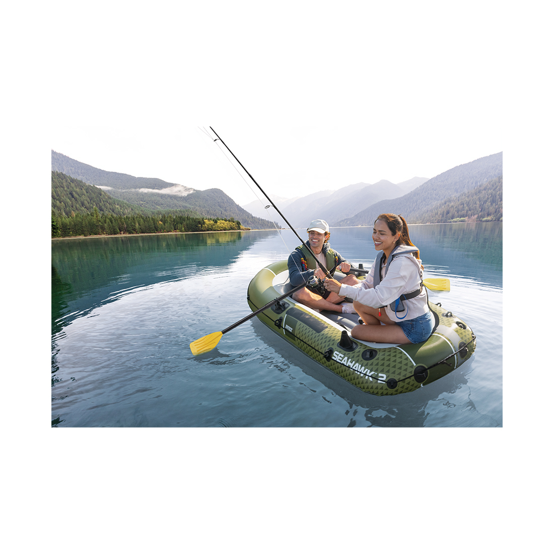 Лодка надувная тм Intex «Seahawk» 2 BOAT SET, габариты 236x114x41 см с веслами, насосом и ремкомплектом предназначена для рыбалки, туристических сплавов, отдыха на воде и водных прогулок вдвоем. Корпус из плотного многослойного ПВХ имеет повышенную прочность к разрывам и проколам, не боится ультрафиолета. Герметичная камера не спускает воздух, позволяя лодке долго оставаться на плаву без необходимости подкачки. Широкое основание обеспечивает устойчивость на воде. Комплект включает весла, которые комфортно крепятся по бортам лодки, а также насос и комплект с ремонтной заплаткой. Максимальная нагрузка – 240 кг.