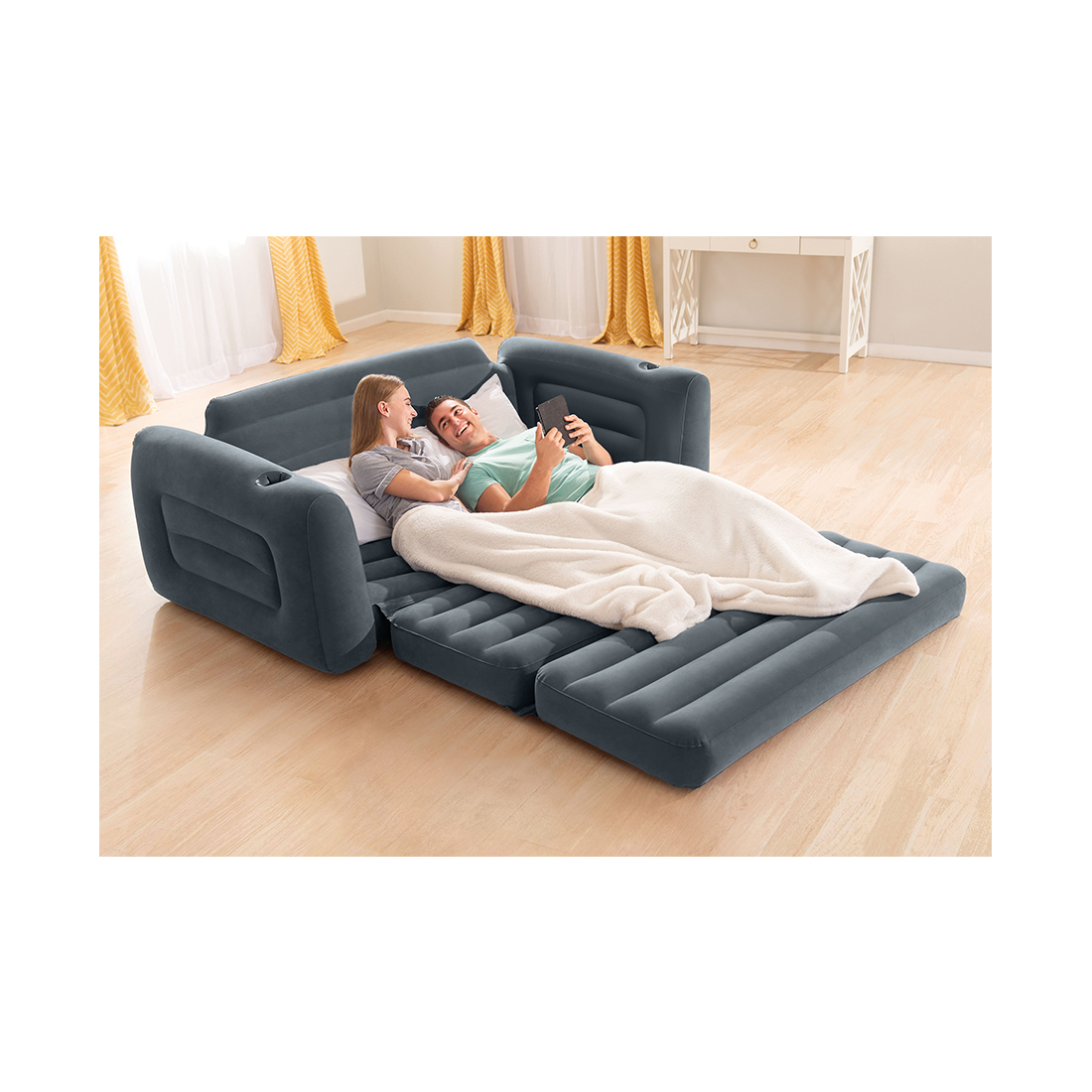 Надувной диван Pull-Out Sofa станет отличным дополнением вашей гостиной, где может расположиться семья или небольшая компания. Одним движением диван превращается в полноценное спальное место, т.е. его можно использовать как двухместную надувную кровать. В подлокотники встроены два удобных подстаканника. Отлично впишется в любой интерьер. Поверхность легко чистится и приятная на ощупь.