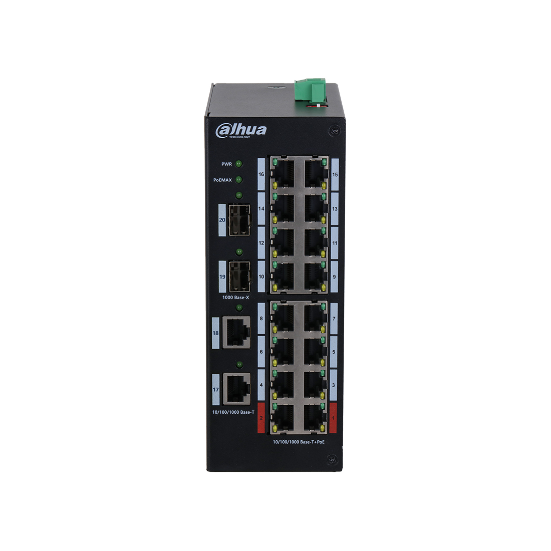 Поставляется с 16 портами PoE 10/100/1000 Мбит/с, 2 Uplink портами связи RJ-45 10/100/1000 Мбит/с и 2 Uplink портами SFP 1000 Мбит/с