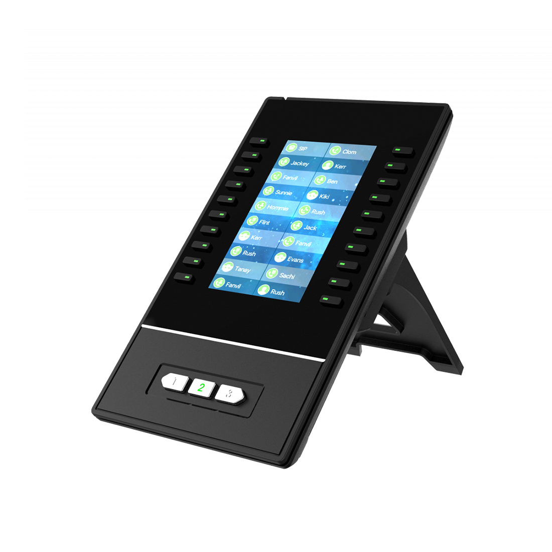 Устройство обеспечивает быстрый доступ к BLF‑индикаторам, сервисным функциям и строкам быстрого набора.